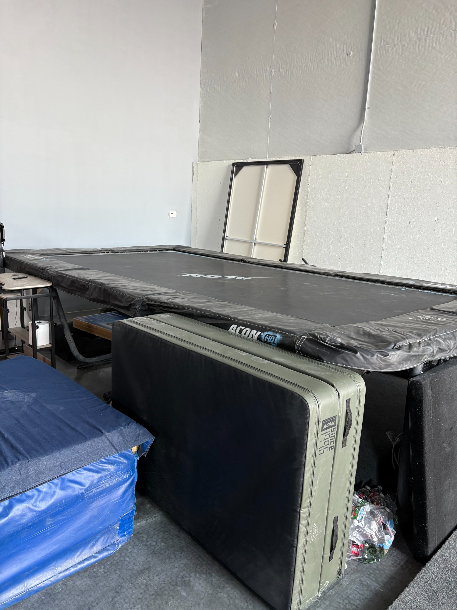 20' running trampoline with a 10' runway for perfecting technique with extra bounce